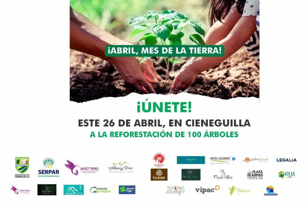 AFEET Perú, junto a la Municipalidad de Cieneguilla y LEGALIA, sembraron 100 árboles en zona desértica para prevenir desastres y dar vida a espacios semiáridos, promoviendo trabajo en equipo.